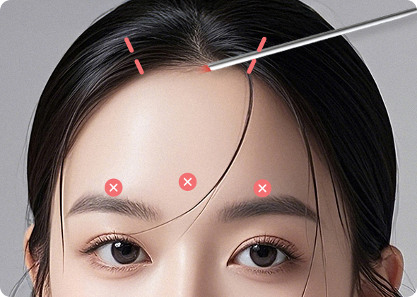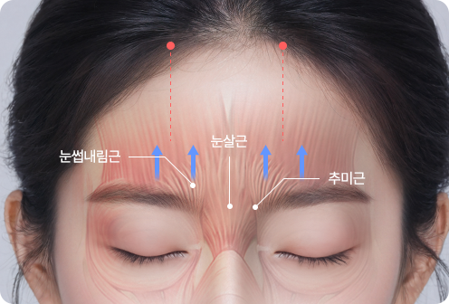 두피 절개부위를 봉합 마무리하여 이마부터 눈썹 처짐을 잡아주어 매끈하고 어려 보이는 동안 이마라인을 완성합니다. 04