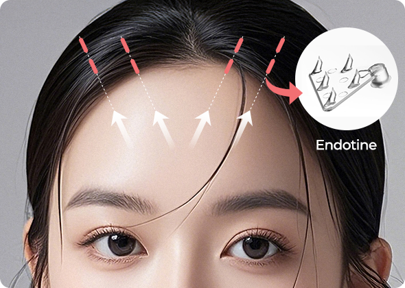 이마 피부를 위쪽으로 당겨 주름을 펴주고 엔도타인 보형물로 단단히 고정시켜줍니다. 03